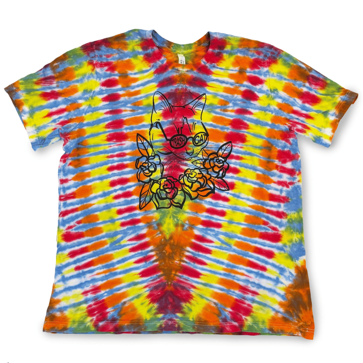 Trash Cats come in all shapes, sizes, and colors! What better way to represent the diverse cats in our lives than with a custom tie-dye shirt. The cat featured on the shirt is a depiction of our dearly departed rescue, Trash, and while she wasn't with us long, she was a true Trash Cat through and through!